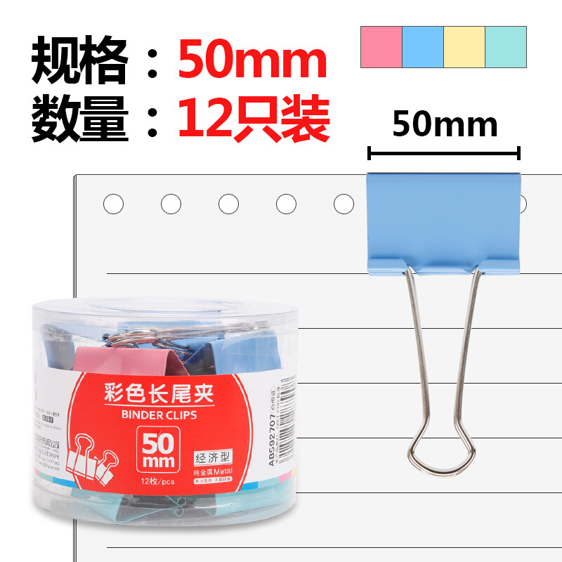 晨光(M&G)文具50mm彩色长尾夹 金属票据夹 办公用品燕尾夹 12个装ABS92707