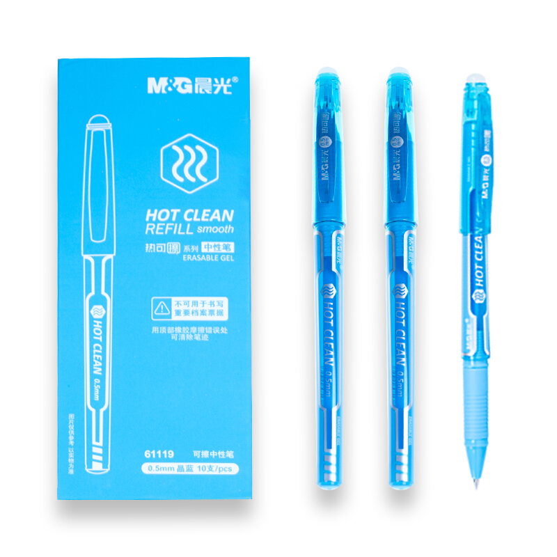 晨光(M&G)文具0.5mm晶蓝色中性笔 热可擦子弹头签字笔 水笔 10支/盒AKP61119