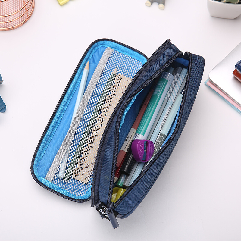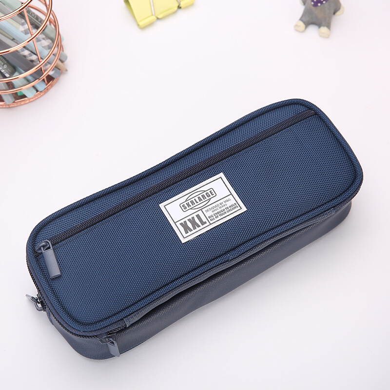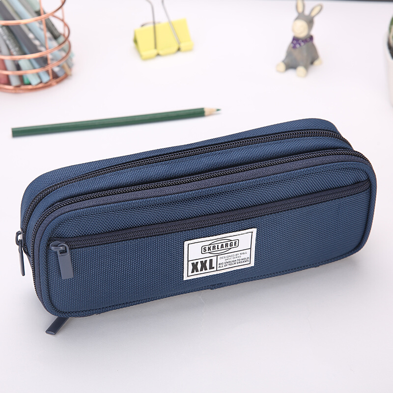 晨光(M&G)文具蓝色大容量笔袋 双层拉链袋文具盒 SKRLARGE系列A款铅笔收纳袋 单个装APBN3840