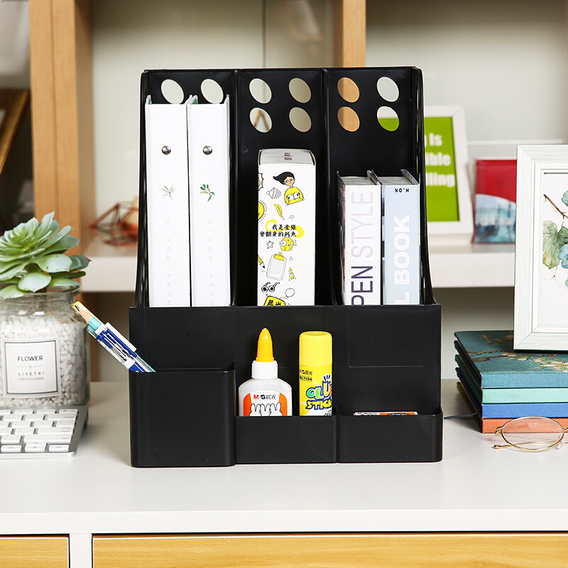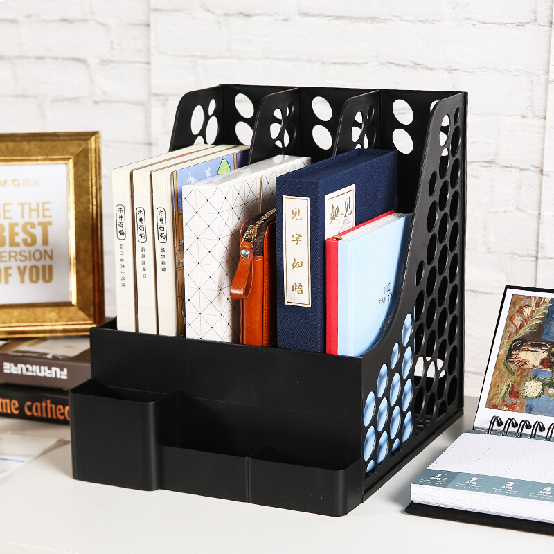 晨光(M&G)睿智系列黑色三联文件框 稳固型镂空文件架多功能文件筐 资料整理收纳文件栏 单个装ADMN4195