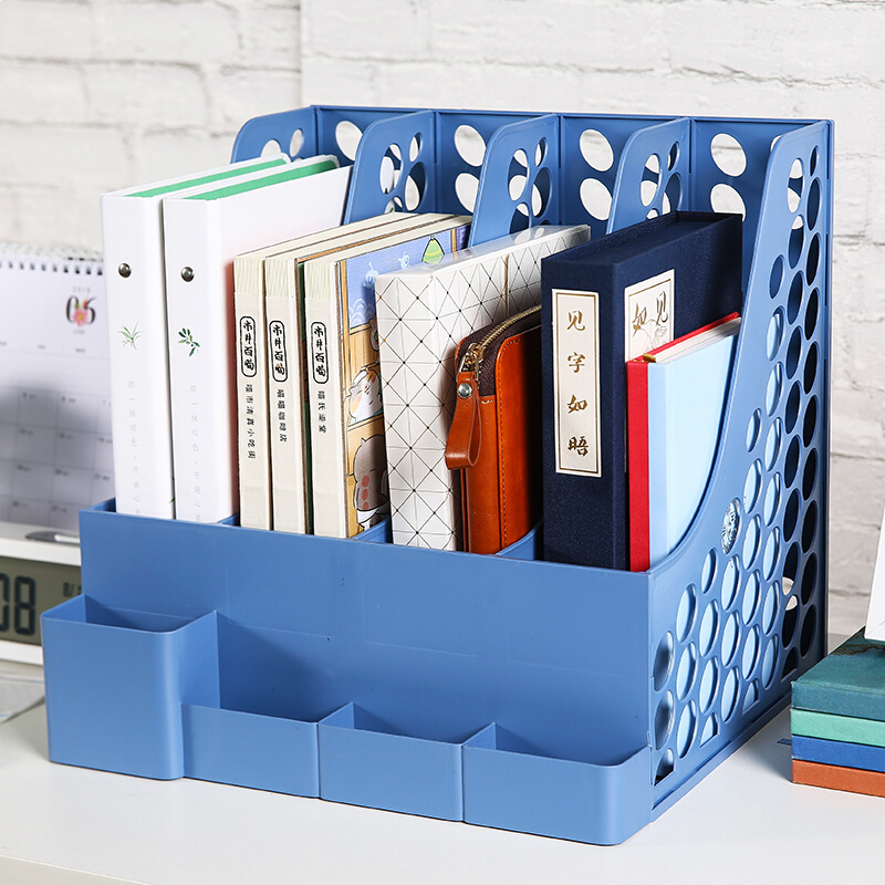 • 晨光ADMN4196 睿智系列蓝色四联文件框 稳固型文件架多功能文件筐 资料整理收纳文件栏 单个装
