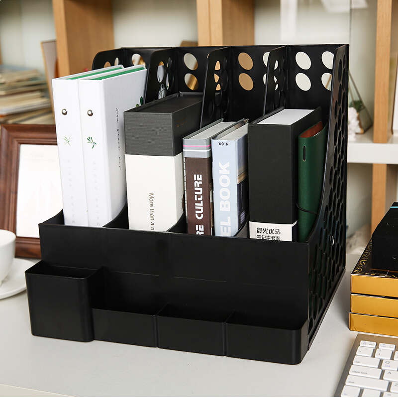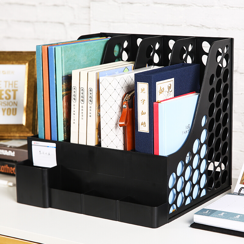 • 晨光ADMN4197 睿智系列黑色四联文件框 稳固型文件架多功能文件筐 资料整理收纳文件栏 单个装