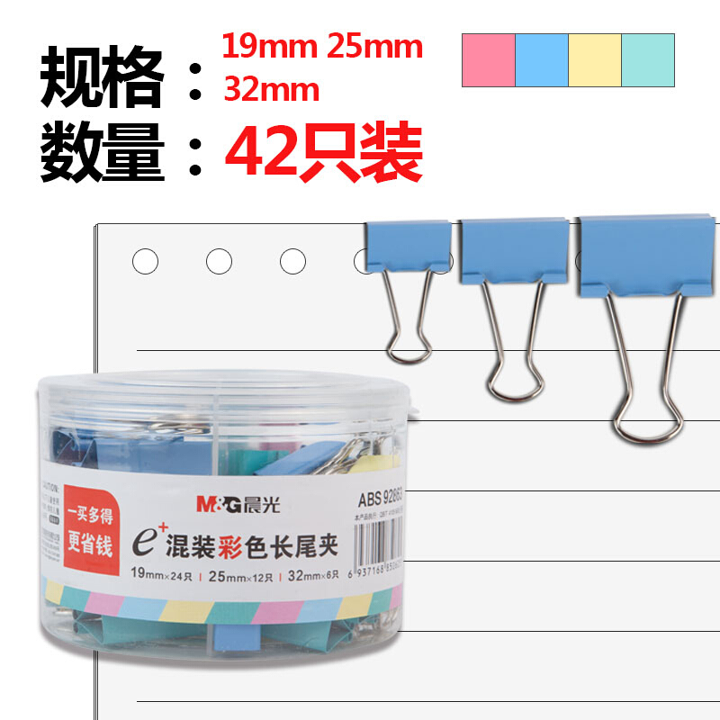 晨光(M&G)文具多规格彩色长尾夹 金属票据夹 Eplus系列办公燕尾夹(19mm/25mm/32mm) 42只装ABS92863