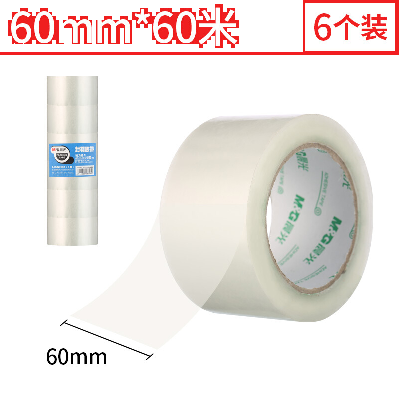 晨光(M&G)文具透明封箱胶带 高粘打包胶带60mm*60m(50um) 6卷/筒AJDN7607