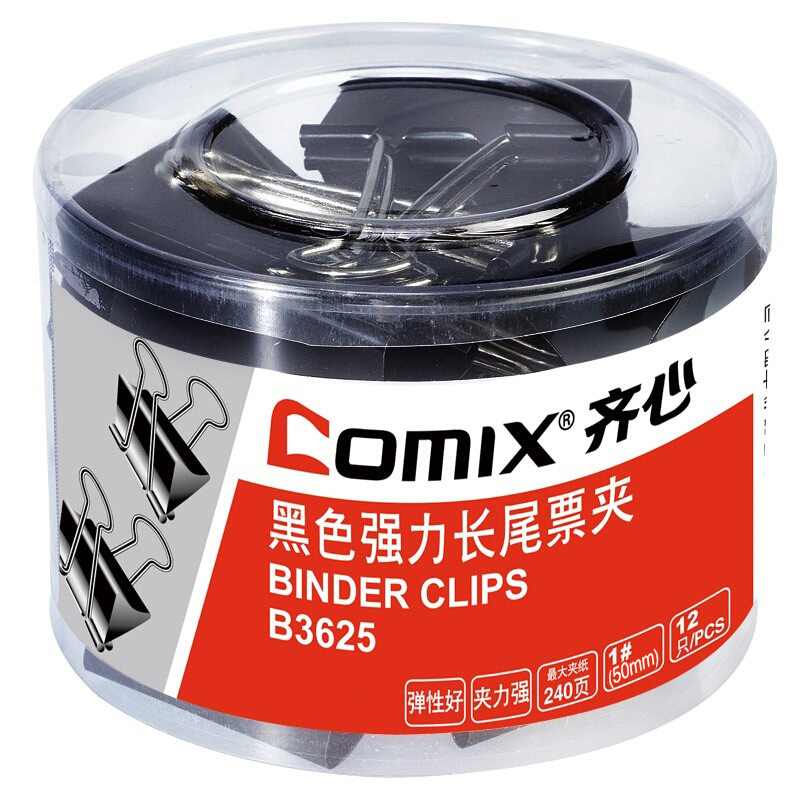齐心B3625 黑色长尾票夹 1# 50mm 12只/筒 黑
