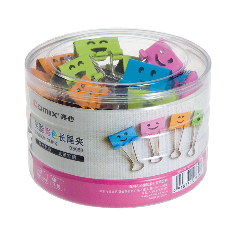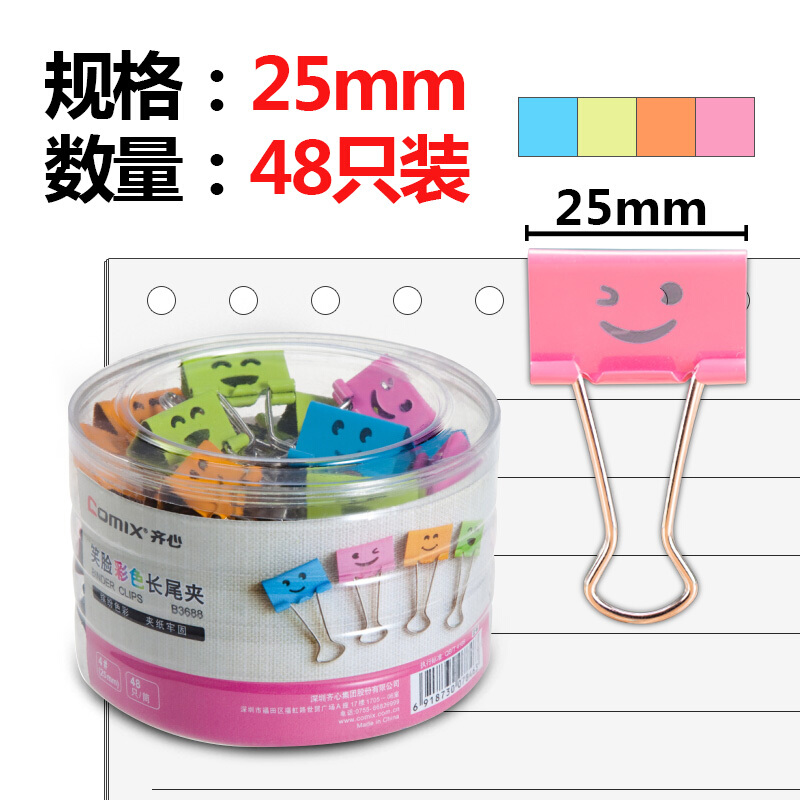 齐心 B3688 笑脸彩色长尾票夹 4# 48只/筒 彩色