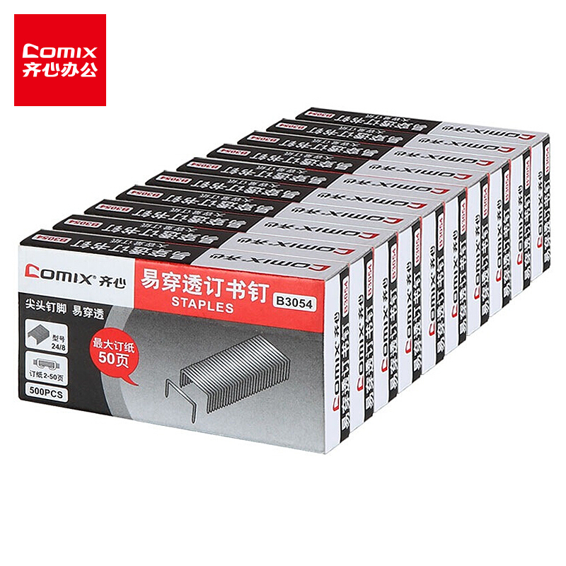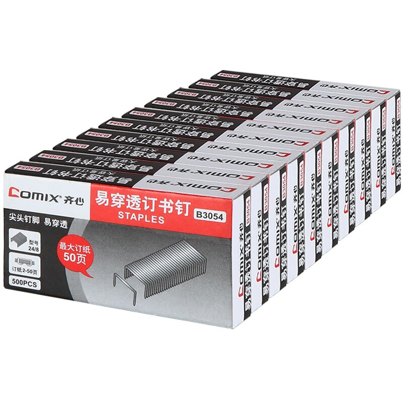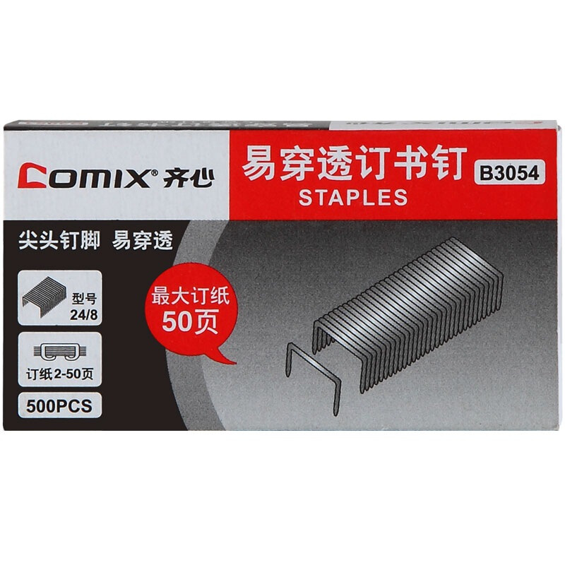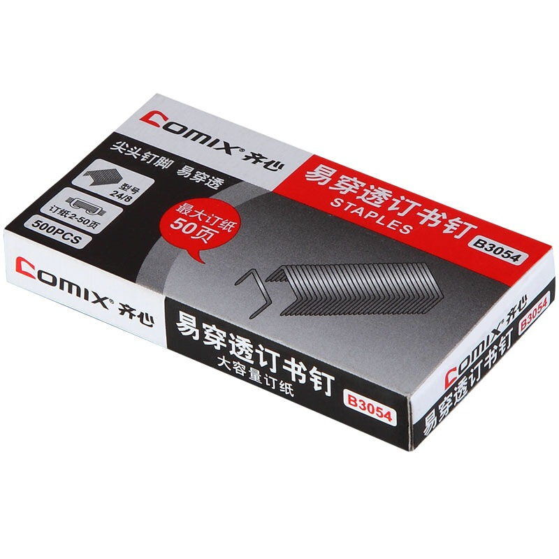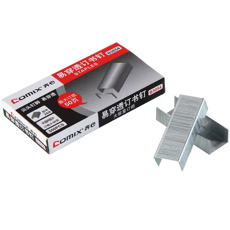 齐心(Comix)B3054易穿透订书钉 配合50页订书机使用的专用配钉(24/8) 500枚/盒