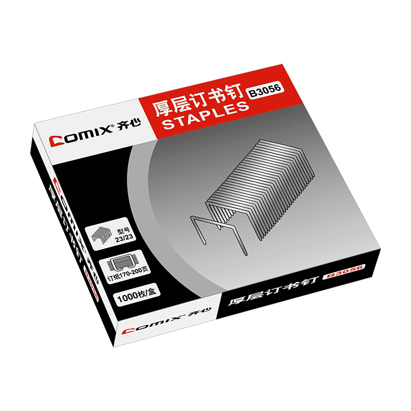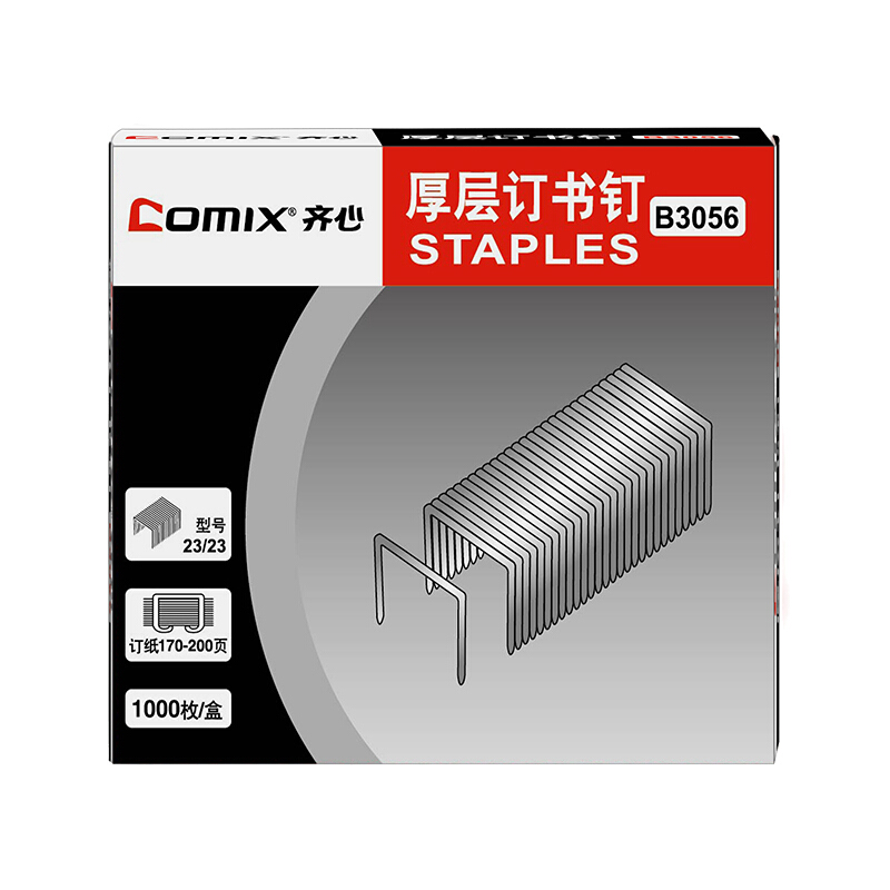 • 齐心B3056 厚层订书钉(23/23)200页 1000枚/盒