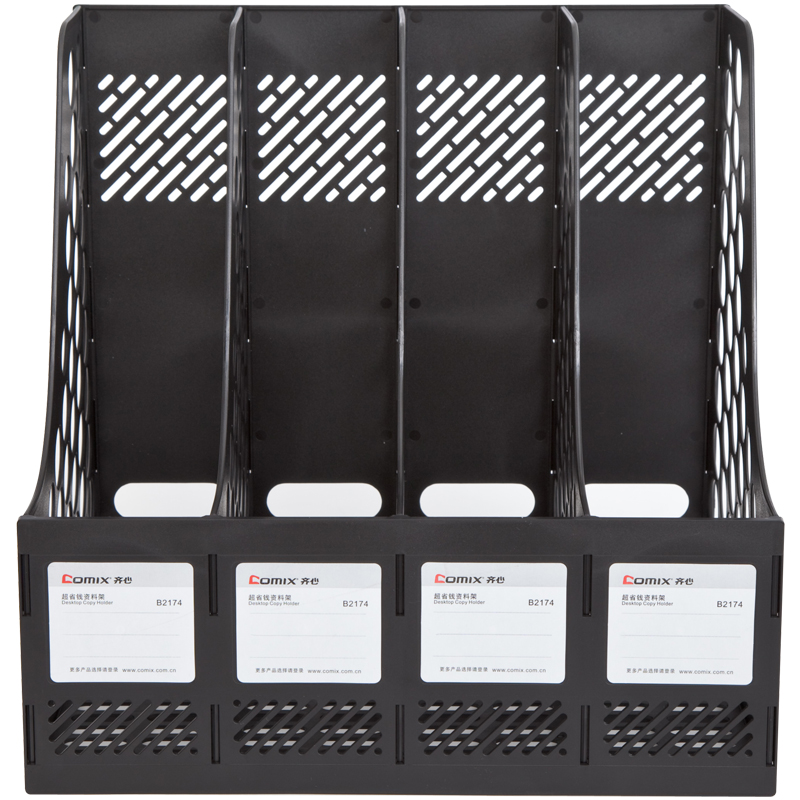 • 齐心(Comix)B2174 牢固耐用四联文件架 办公用品文件框文件筐资料架文件收纳栏 黑色