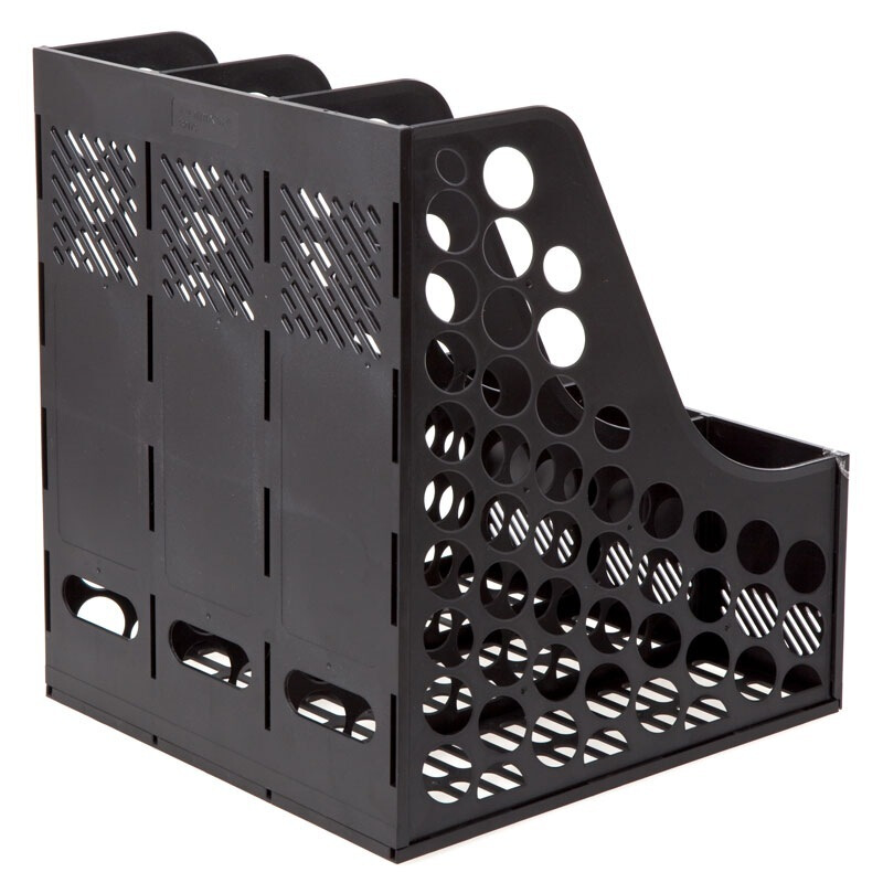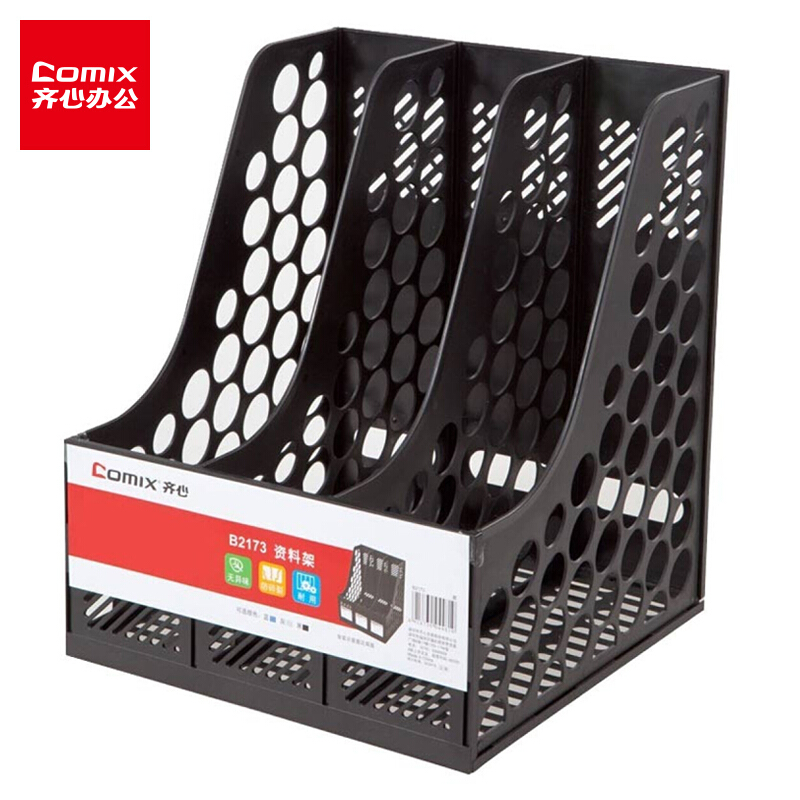 • 齐心(Comix) 三联桌面文件框 三栏带标签稳固文件栏/文件筐/资料框 黑色B2173