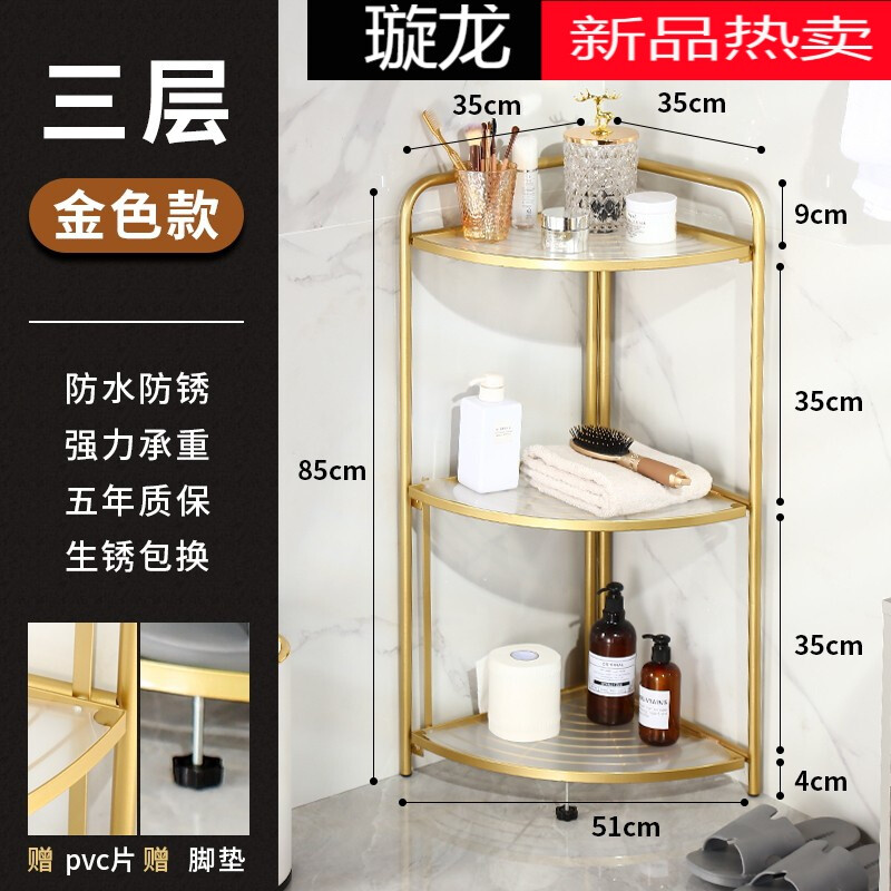 • 卫生间置物架落地款沥水收纳架浴室卫生间置物架用品大全厕所洗手间脸盆三角收纳架多层架子落地 金色三层【免安装·防水防锈款】