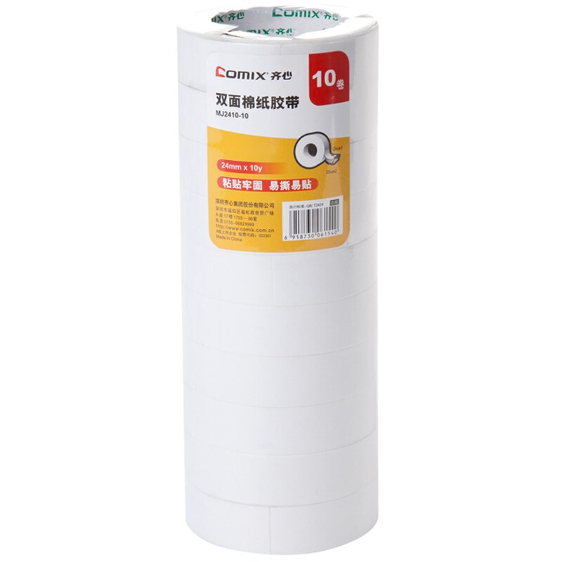 • 齐心MJ2410 双面棉纸胶带 24mm*10y 白色