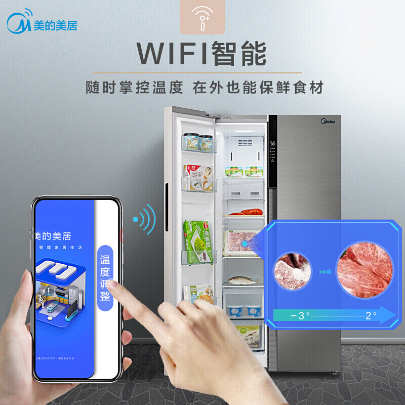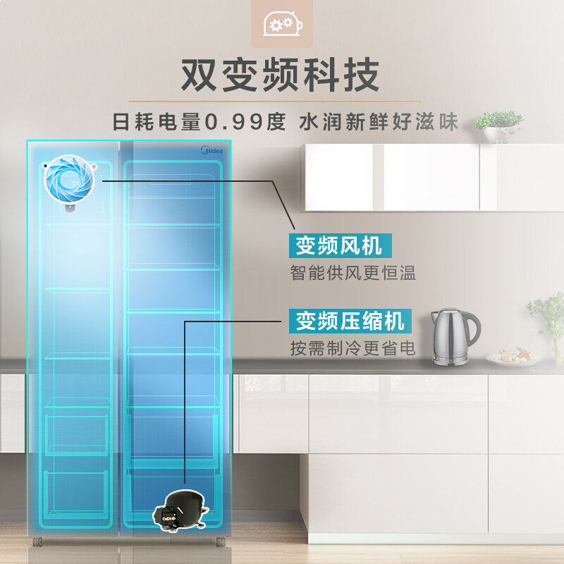 • 美的BCD-525WKPZM(E) 525升 风冷无霜对开门双门冰箱变频电子控温智能冷藏冷冻节能省电