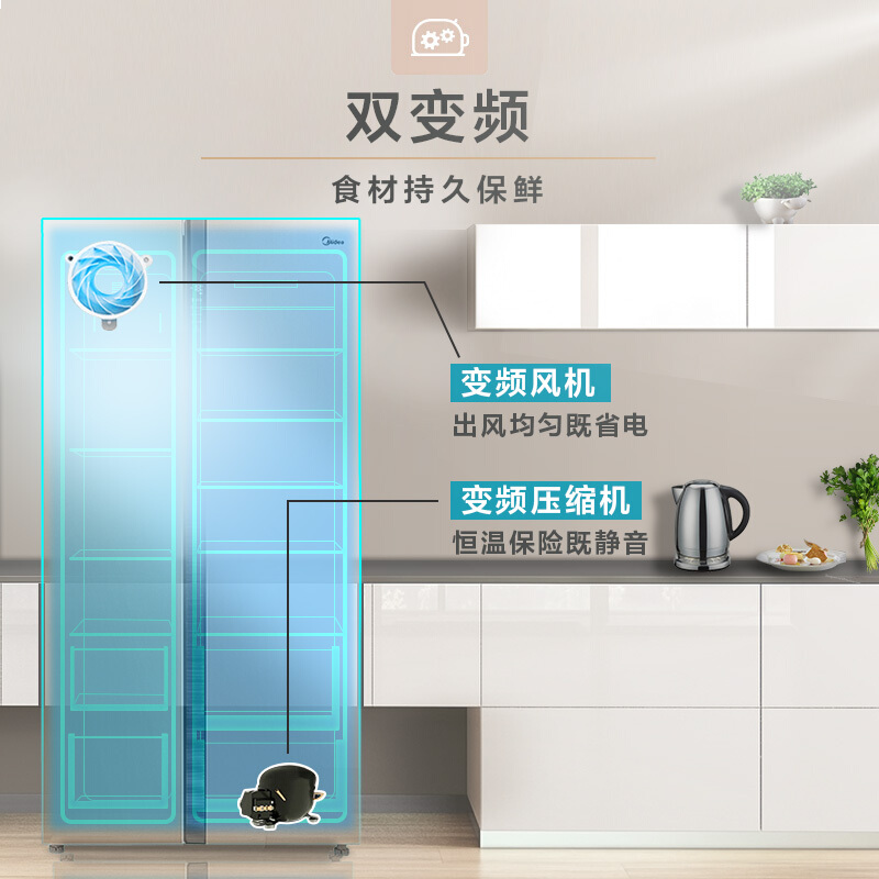• 美的BCD-638WKPZM(E) 638升 对开门双门家用冰箱抗菌保鲜智能双变频风冷无霜一级能效节能省电