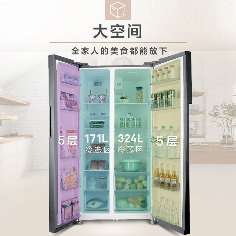 美的BCD-531WKPZM(E) 531升对开门双门家用冰箱保鲜智能双变频风冷无霜一级能效冷藏冷冻节能