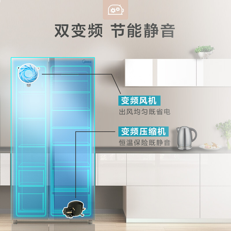 • 美的BCD-531WKPZM(E) 531升对开门双门家用冰箱保鲜智能双变频风冷无霜一级能效冷藏冷冻节能