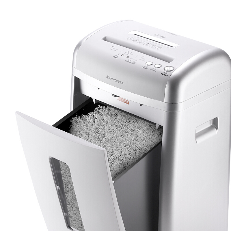 • 三木(SUNWOOD)PS5效率王系列5级保密双入口碎纸机(单次8张持续7分钟17.5L可碎卡光盘纸回形针订书针)银灰
