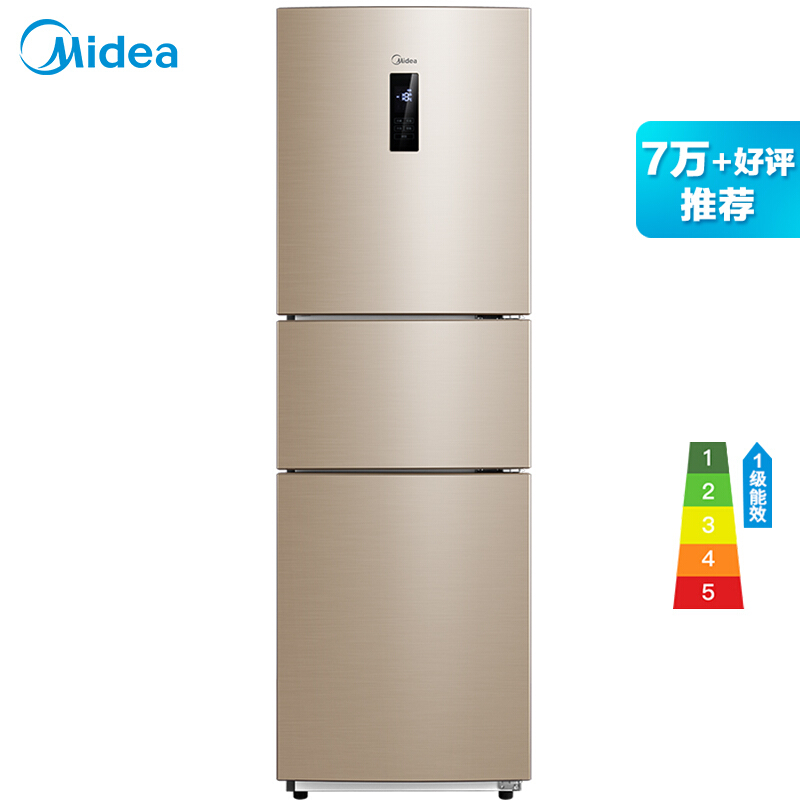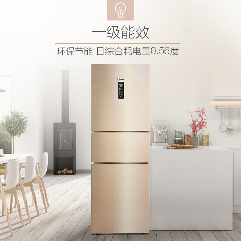 美的BCD-258WTPZM(E) 258升 三门冰箱家用一级能效节能省电双变频风冷无霜电冰箱小智能变温