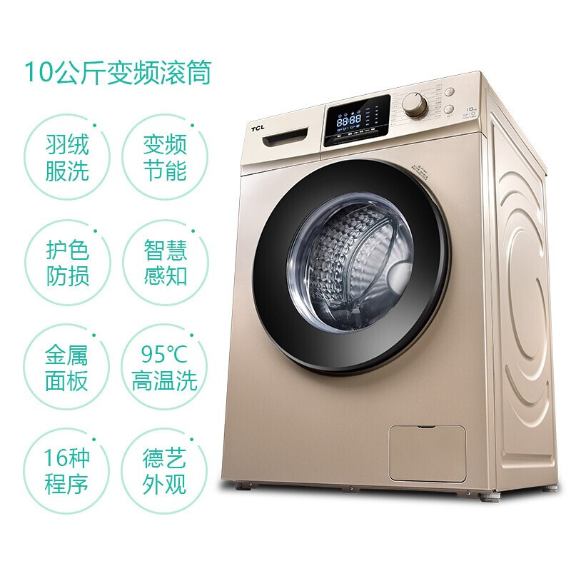 • TCL 10KG变频滚筒L120除菌洗衣机全自动滚筒洗衣机 健康除菌 除菌率>99.9% 节能低音G100L120-B