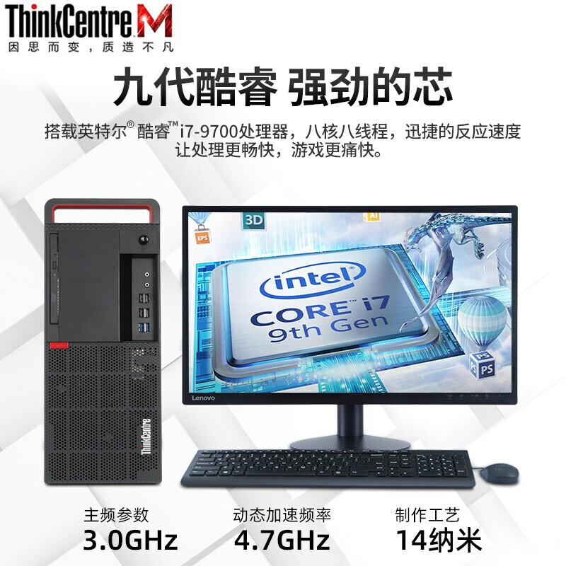 联想M920T商用台式设计电脑I7-9700(主频3G 8核)16G 1T+256G 4G独显 主机+23.8英寸显示器