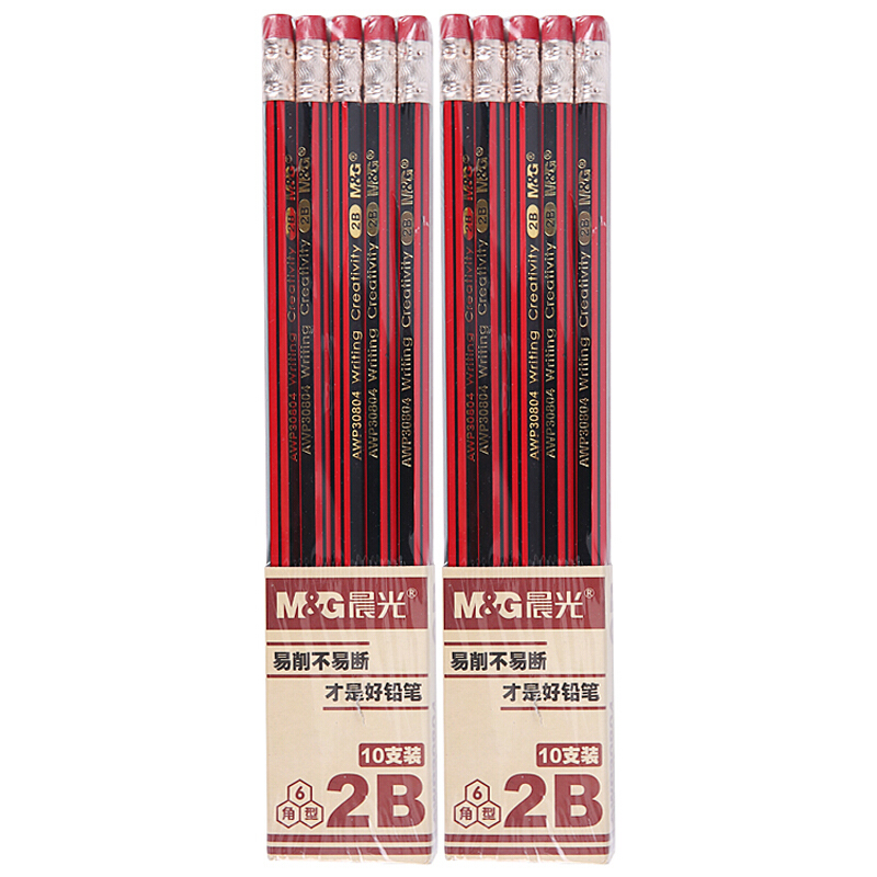 晨光(M&G)文具2B六角木杆铅笔 学生经典红黑抽条考试铅笔(带橡皮) 美术素描绘图木质铅笔 20支/盒AWP30804