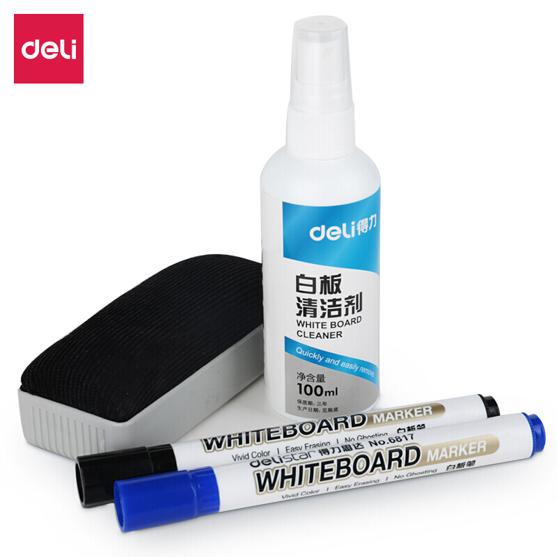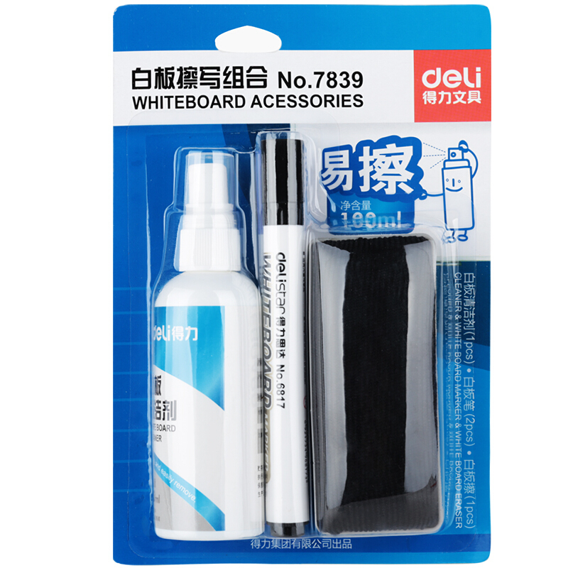 得力(deli)白板笔套装白板清洁套装可擦易写 白板擦白板清洁剂白板笔 白板配件清洁组合套装7839