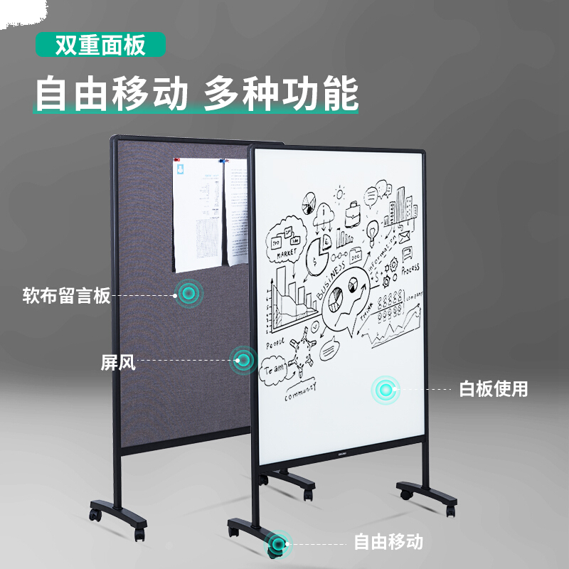 得力(deli)钢化玻璃屏风白板180*102cm H型支架可移动白板双面磁性写字板 留言板 绒布软木板50060