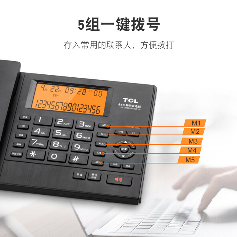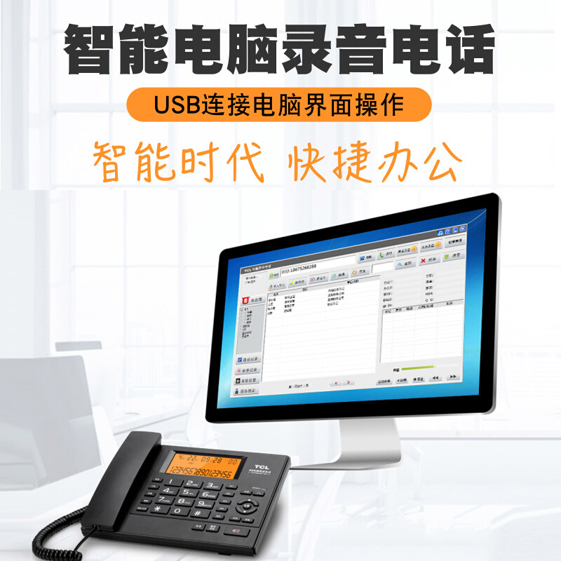 - TCL智能录音电话机座机 HCD68 办公客服律师有线录音电话机 USB连接电脑 通话软件系统管理 HCD868(68)TSD 电脑录音