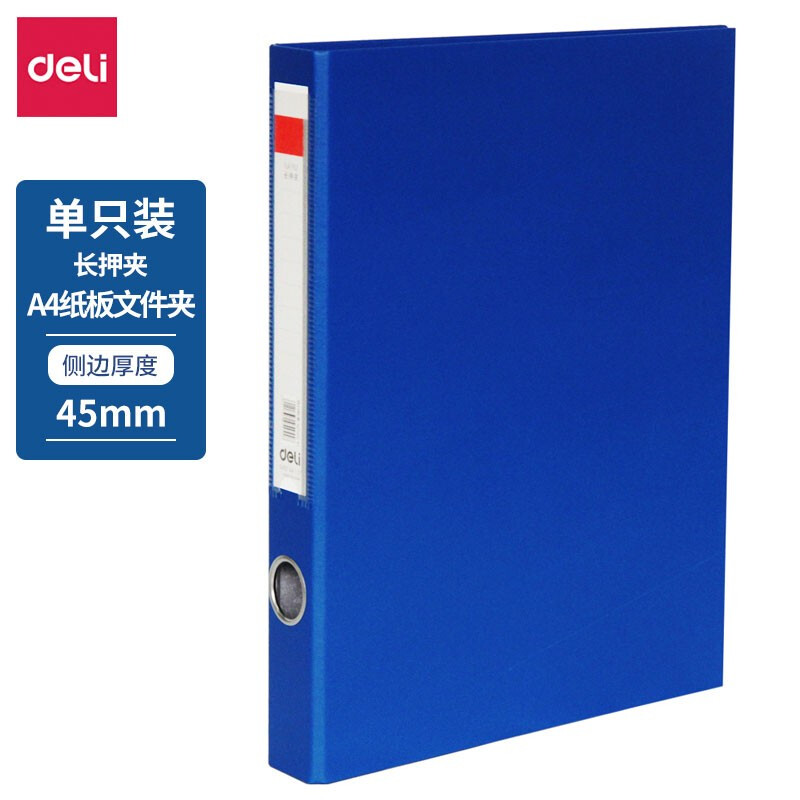 得力(deli)纸板文件夹双强力文件夹板夹A4纸板活页资料弹簧打孔夹子 长押夹蓝色 5455