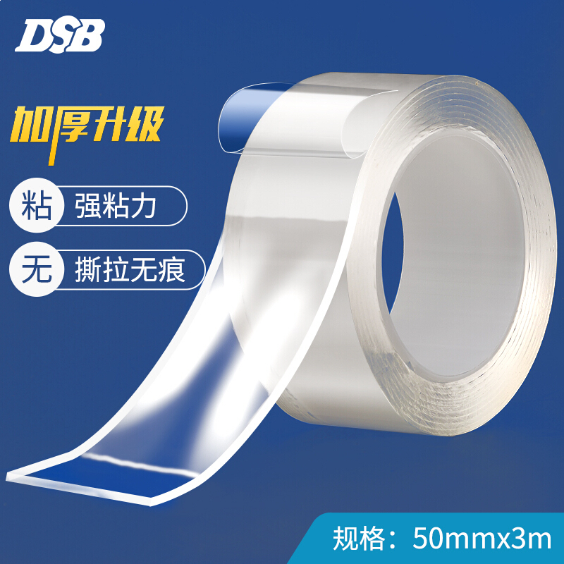 • DSB 万次纳米强力无痕魔力胶带2.0mm加厚超粘款50mm*3m 双面固定爬墙贴随手贴 1卷装透明家用车用无痕双面胶