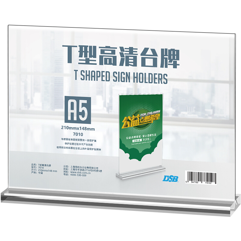 • DSB T型高清台牌 双面台卡210mm*148mm A5 横款 台签会议展示牌桌牌酒水餐牌桌卡 7010