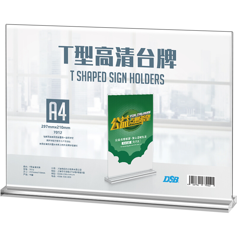 • DSB T型高清台牌 双面台卡297mm*210mm A4 横款 台签会议展示牌桌牌酒水餐牌桌卡 7012