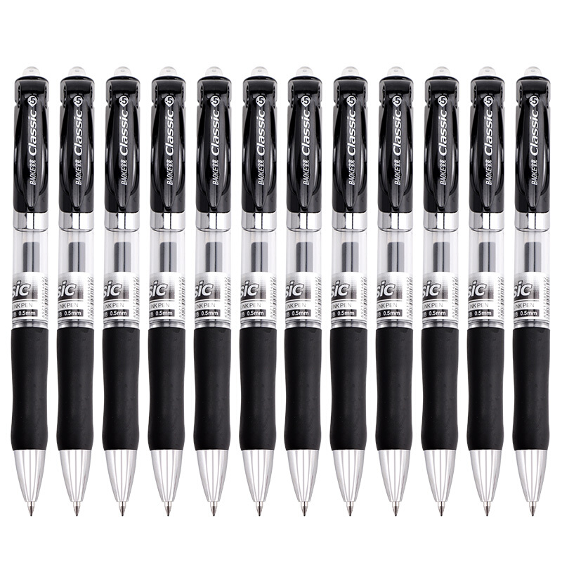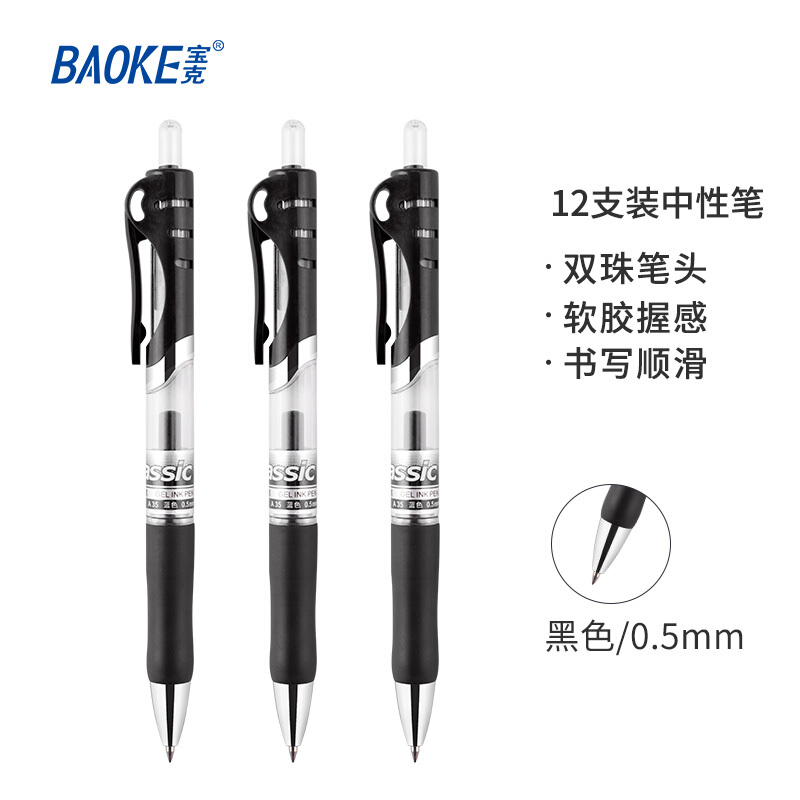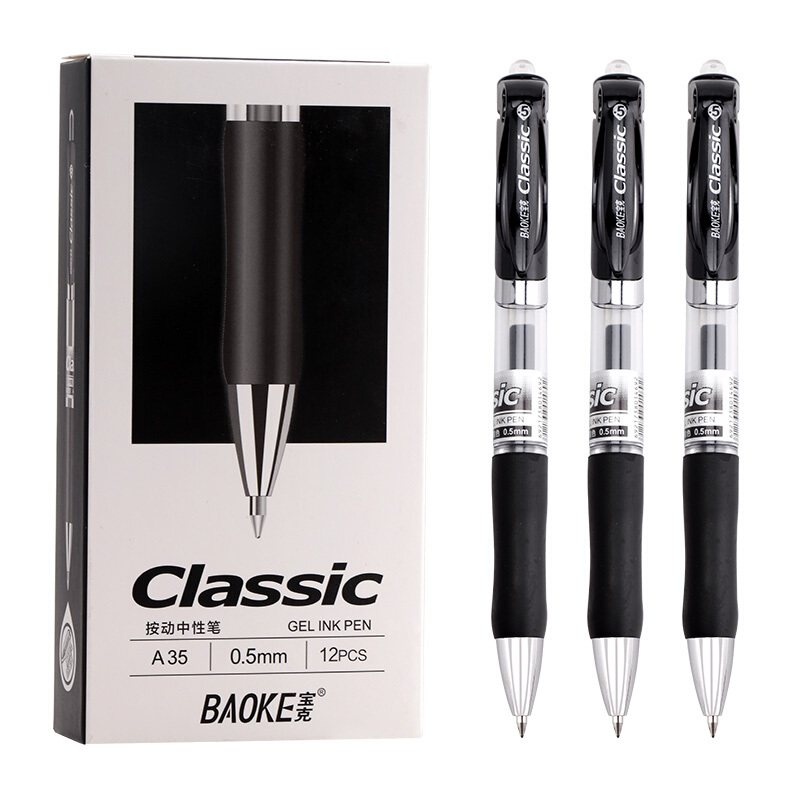 • 宝克(BAOKE)A35 0.5mm黑色按动中性笔办公签字笔 子弹头水笔12支/盒