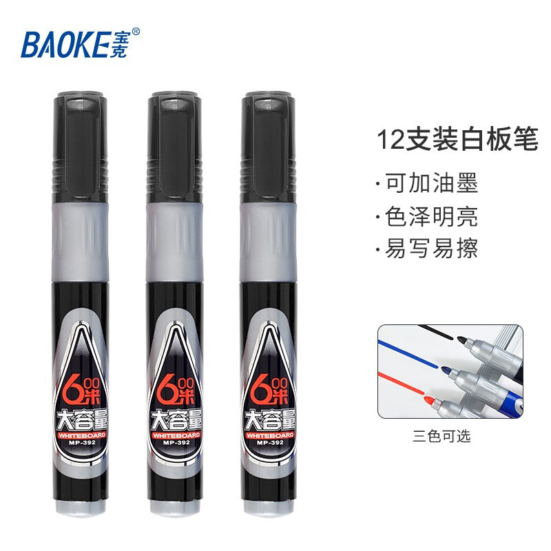 • 宝克(BAOKE)大容量白板笔,可擦易擦,600米长效书写 黑色(盒/12支)MP392