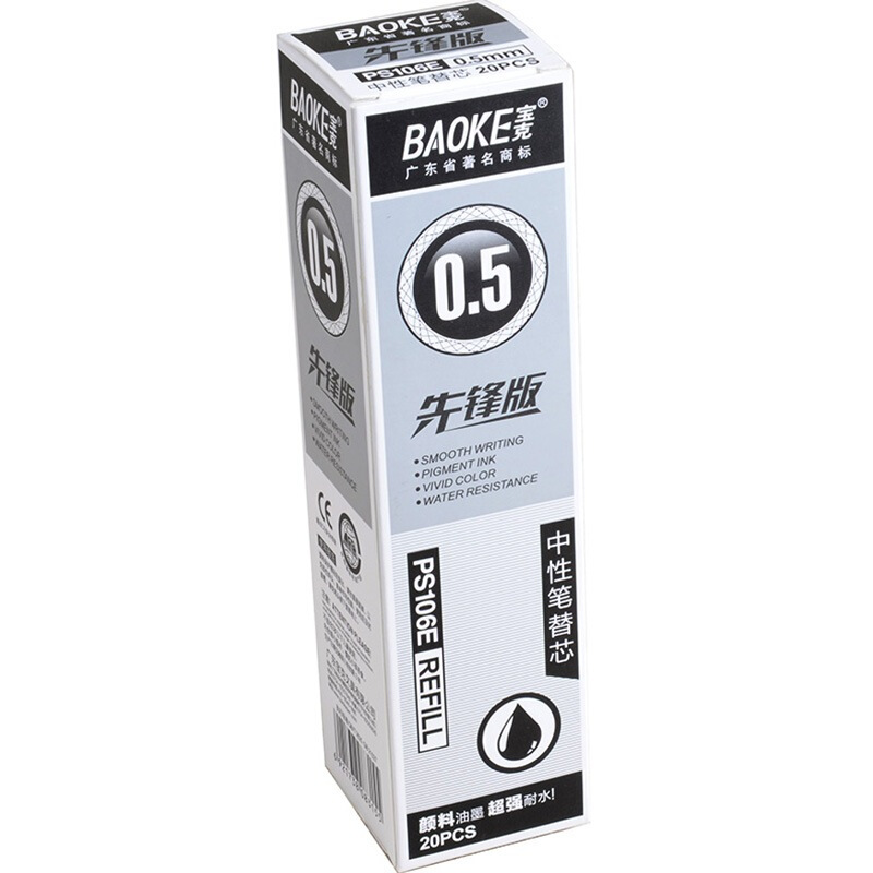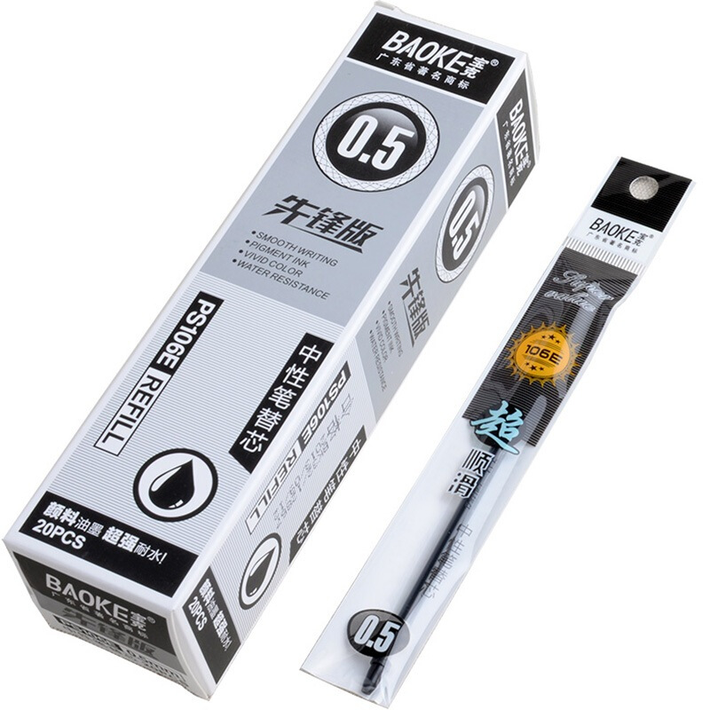 宝克(BAOKE) PS106E 子弹头通用中性笔芯0.5mm 黑色 20支/盒