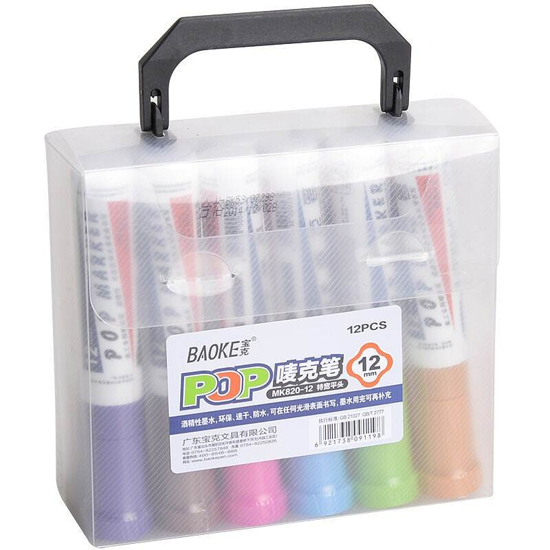 宝克(BAOKE) POP唛克笔套装 海报广告画笔 彩色马克笔 MK830 12个颜色装 12mm
