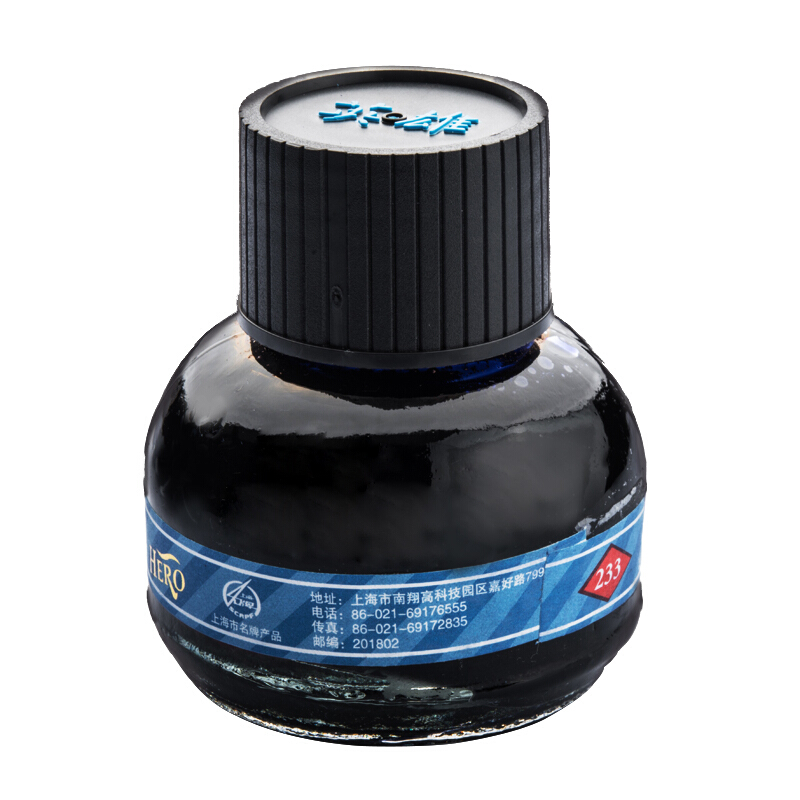 英雄(HERO)钢笔专用墨水碳素钢笔水纯黑不堵笔非碳素墨水纯蓝色学生用红蓝黑色234 233-蓝色非碳素墨水 60ml