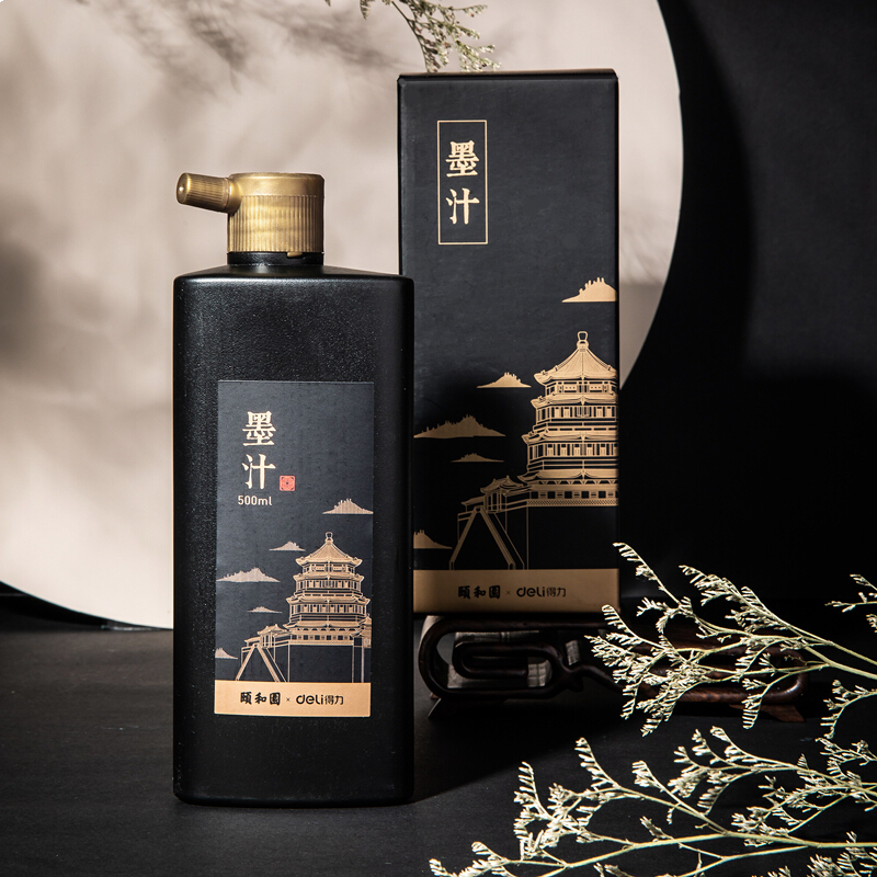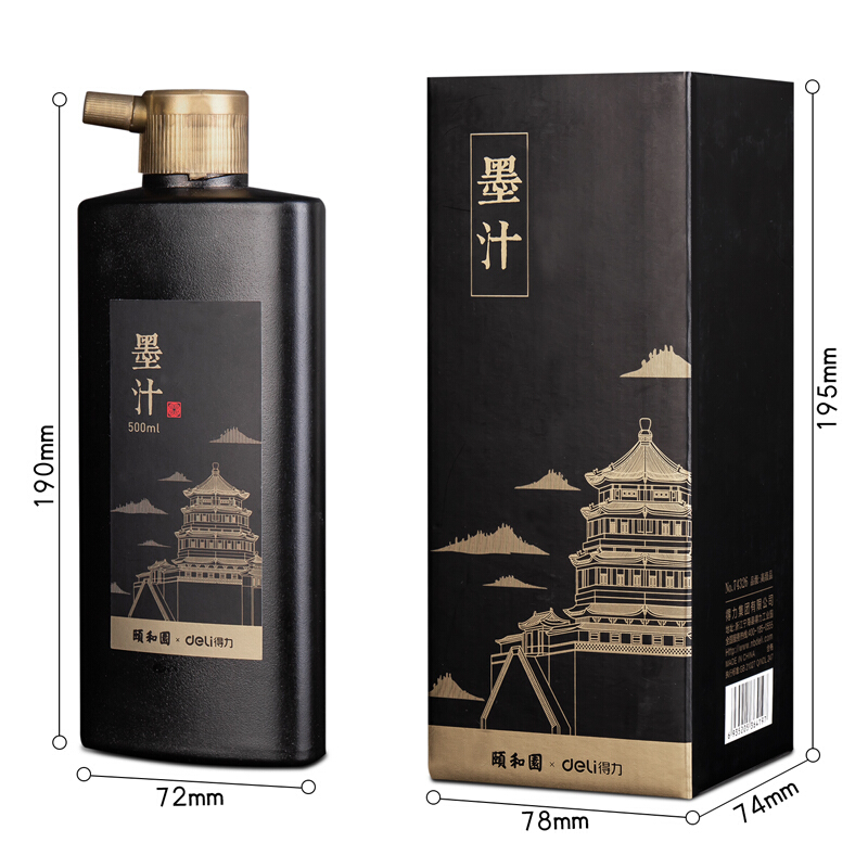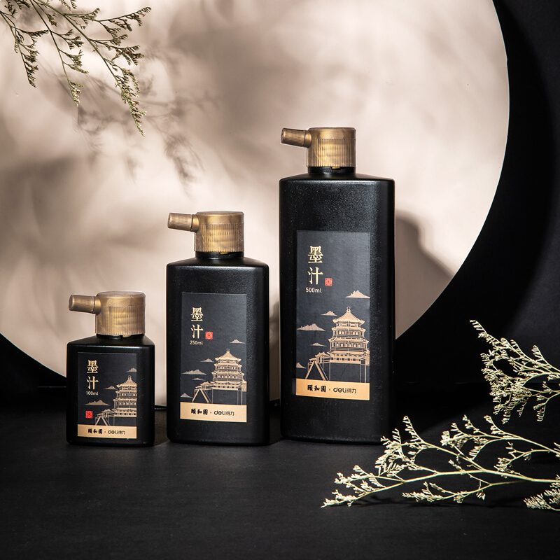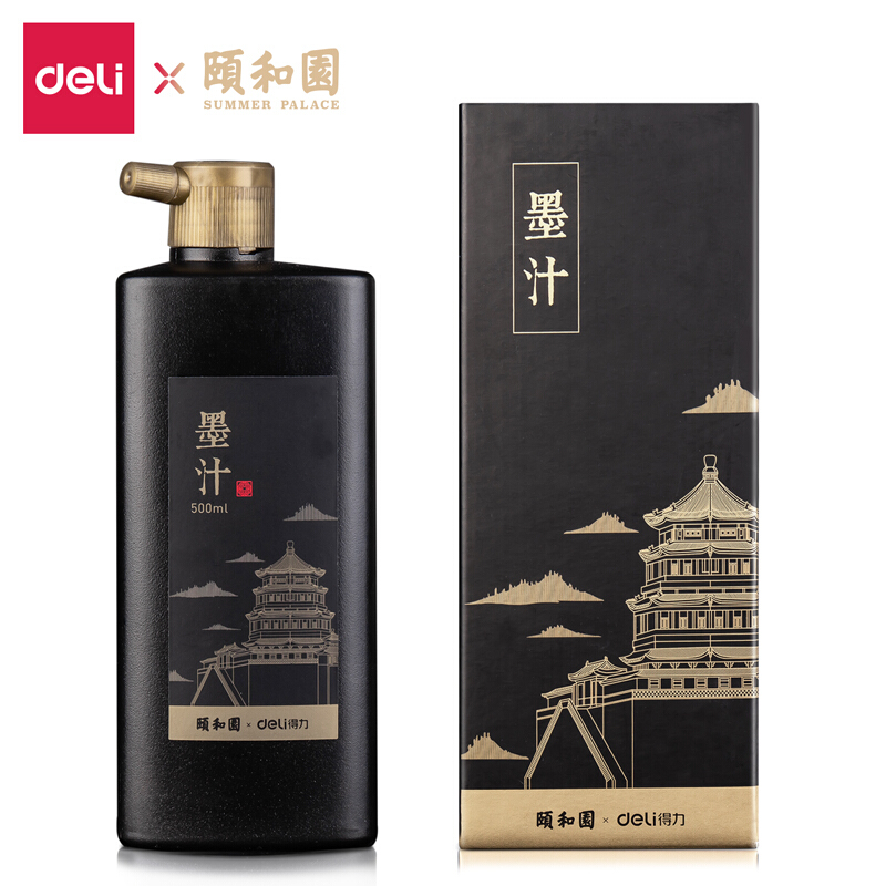 • 得力74326 颐和园系列500ml特质浓墨 文房四宝 书法国画绘画 创作墨汁 毛笔书画用墨 练习墨汁