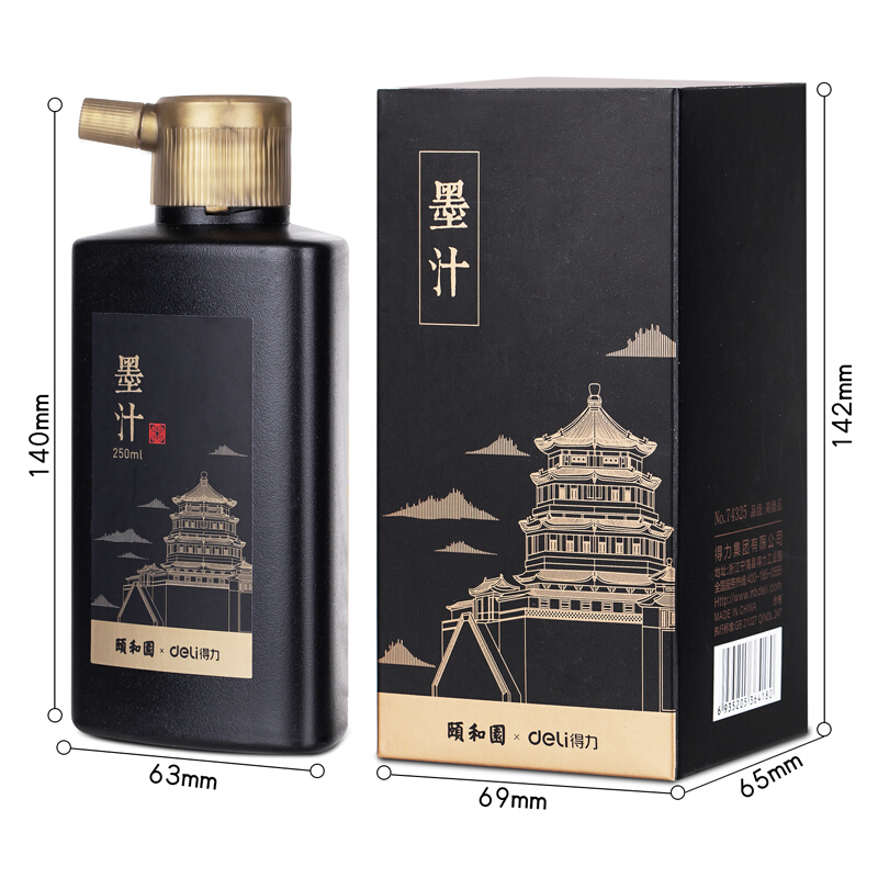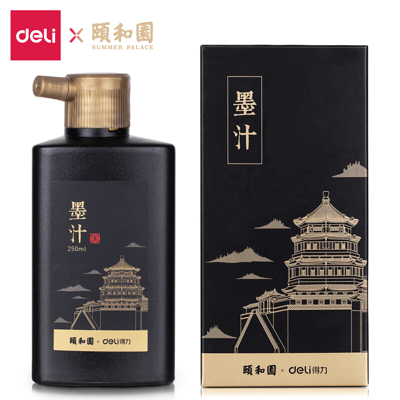 • 得力74325 颐和园系列250ml特质浓墨 文房四宝 书法国画绘画 创作墨汁 毛笔书画用墨 练习墨汁