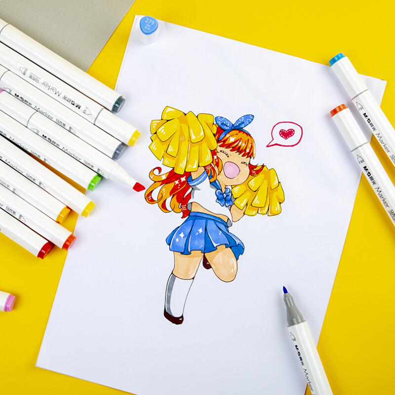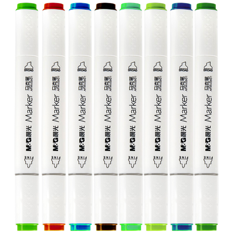 • 晨光APMV0903 快干双头马克笔文具48色 纤维头学生重点标记记号笔 涂鸦笔绘画笔 48支/盒