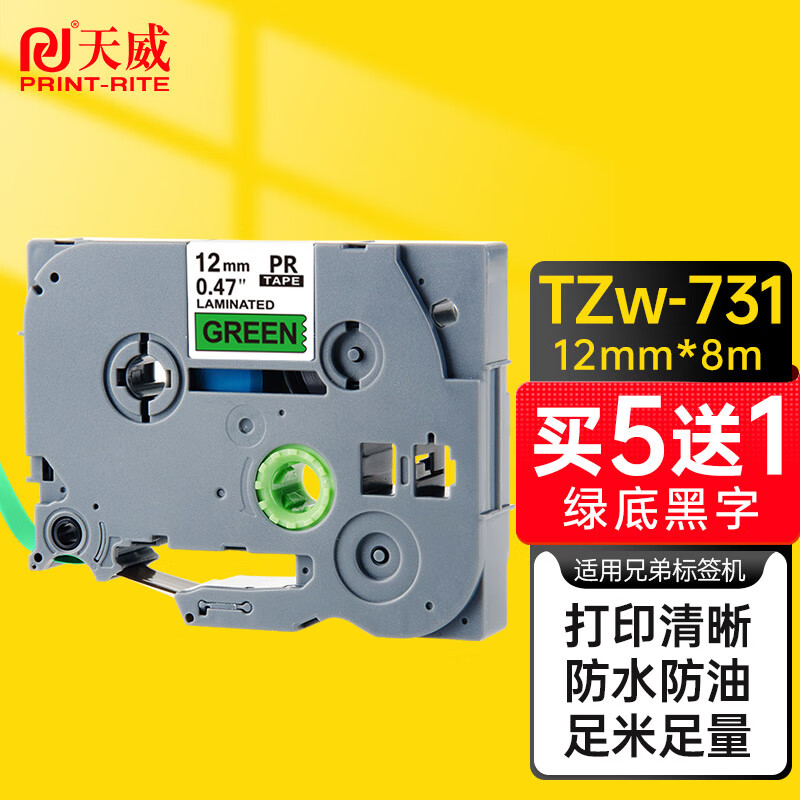 天威 TZw731标签色带12mm绿底黑字 不干胶标签纸