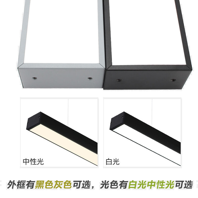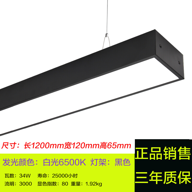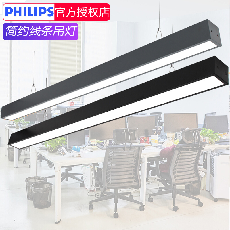 飞利浦办公室吊灯LED简约现代led长条教室会议室长方形灯具灯饰写字楼吊线灯商业照明办公楼书房铝材灯 【黑框宽款】1.2米中性光4000K