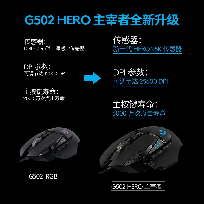• 罗技 G502 HERO主宰者有线鼠标 游戏鼠标 HERO引擎 RGB鼠标 电竞鼠标 25600DPI
