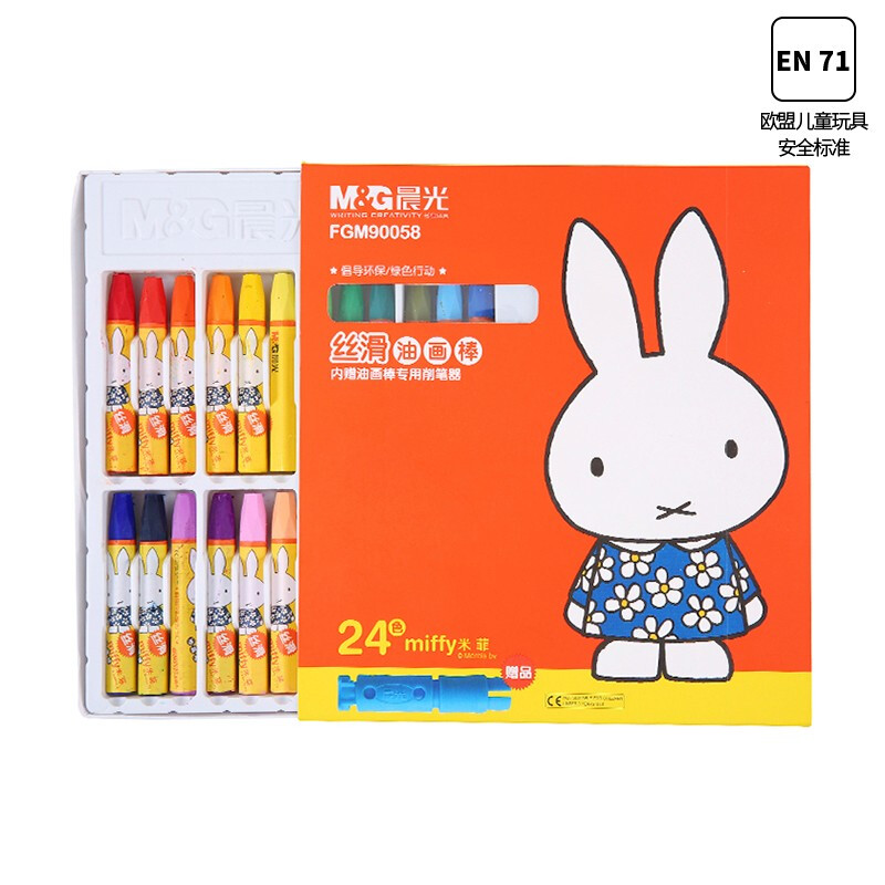 晨光(M&G)文具24色卡通丝滑油画棒 儿童涂鸦绘画笔 米菲系列蜡笔套装 24支/盒FGM90058