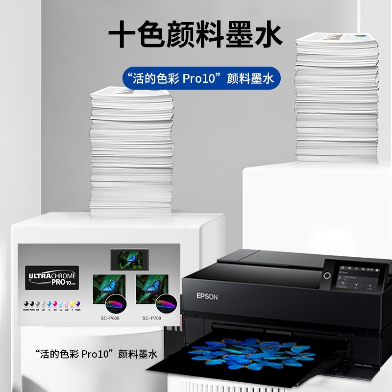 - 爱普生(EPSON)P708 A3+大幅面 照片打印机 海报写真喷绘彩色打印机(高分辨率 10色墨盒高品质打印)