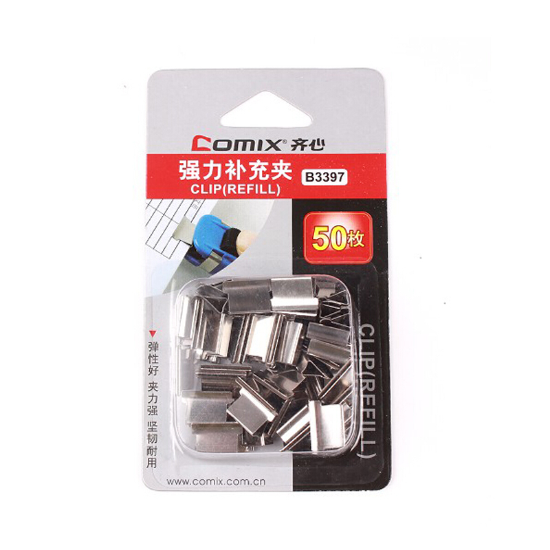 • 齐心B3397 推夹器补充夹 中号 50个/盒镍色