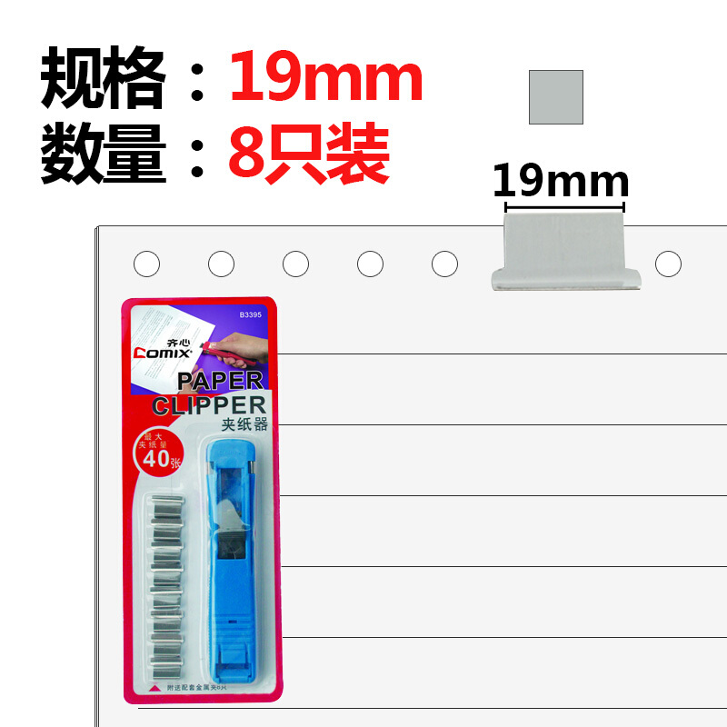齐心 B3395 推夹器 中号 附送8枚补充夹 蓝色