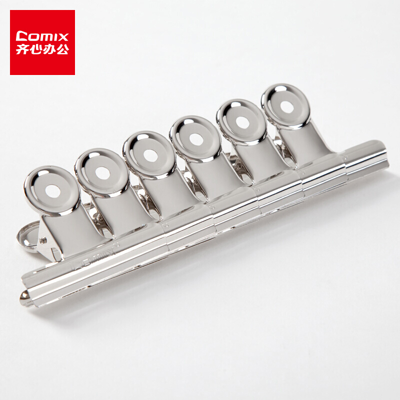 • 齐心B3612 圆形白钢夹 2# 64mm 6只/袋 镍