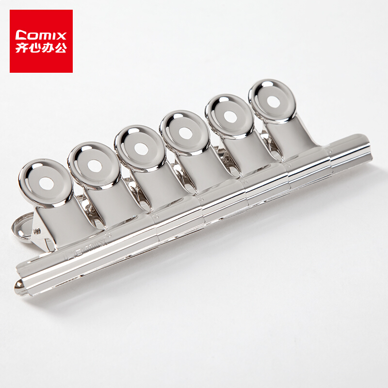 • 齐心B3611 圆形白钢夹 1# 76mm 6只/袋 镍