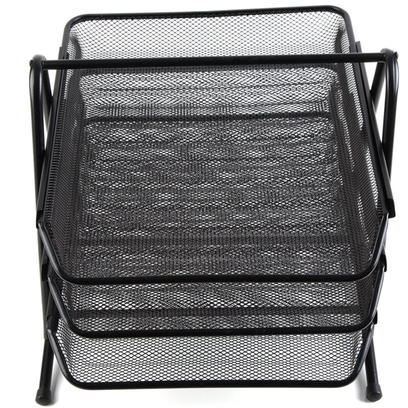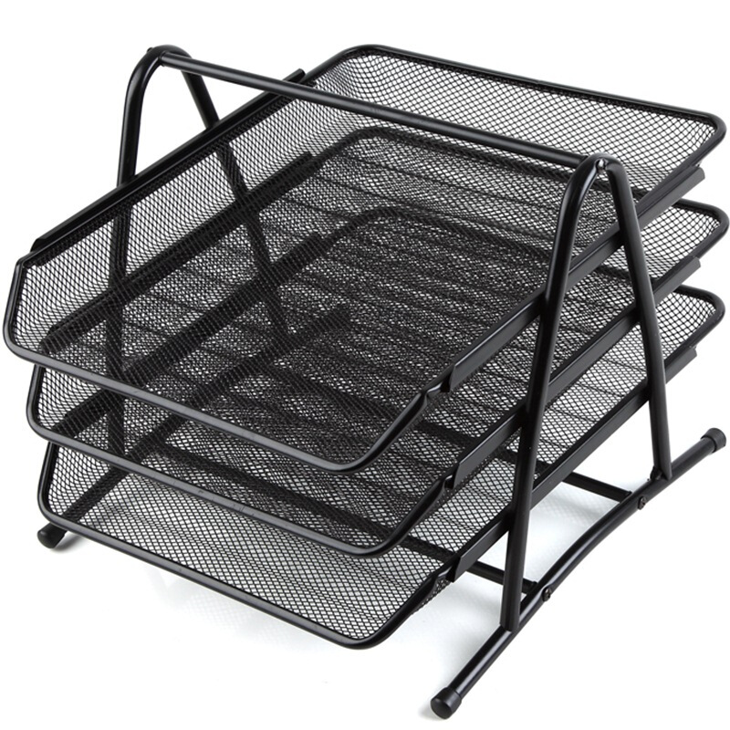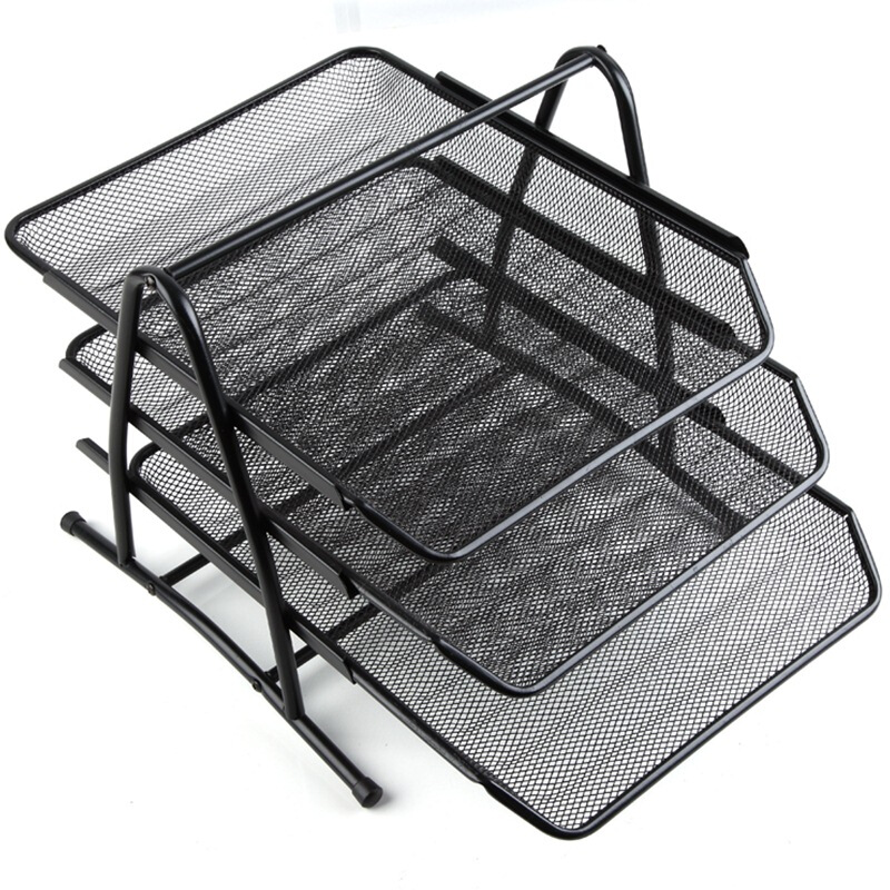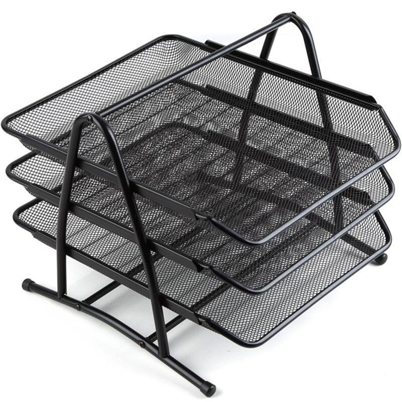 • 齐心 B2163 耐用铁网文件盘 三层 黑色